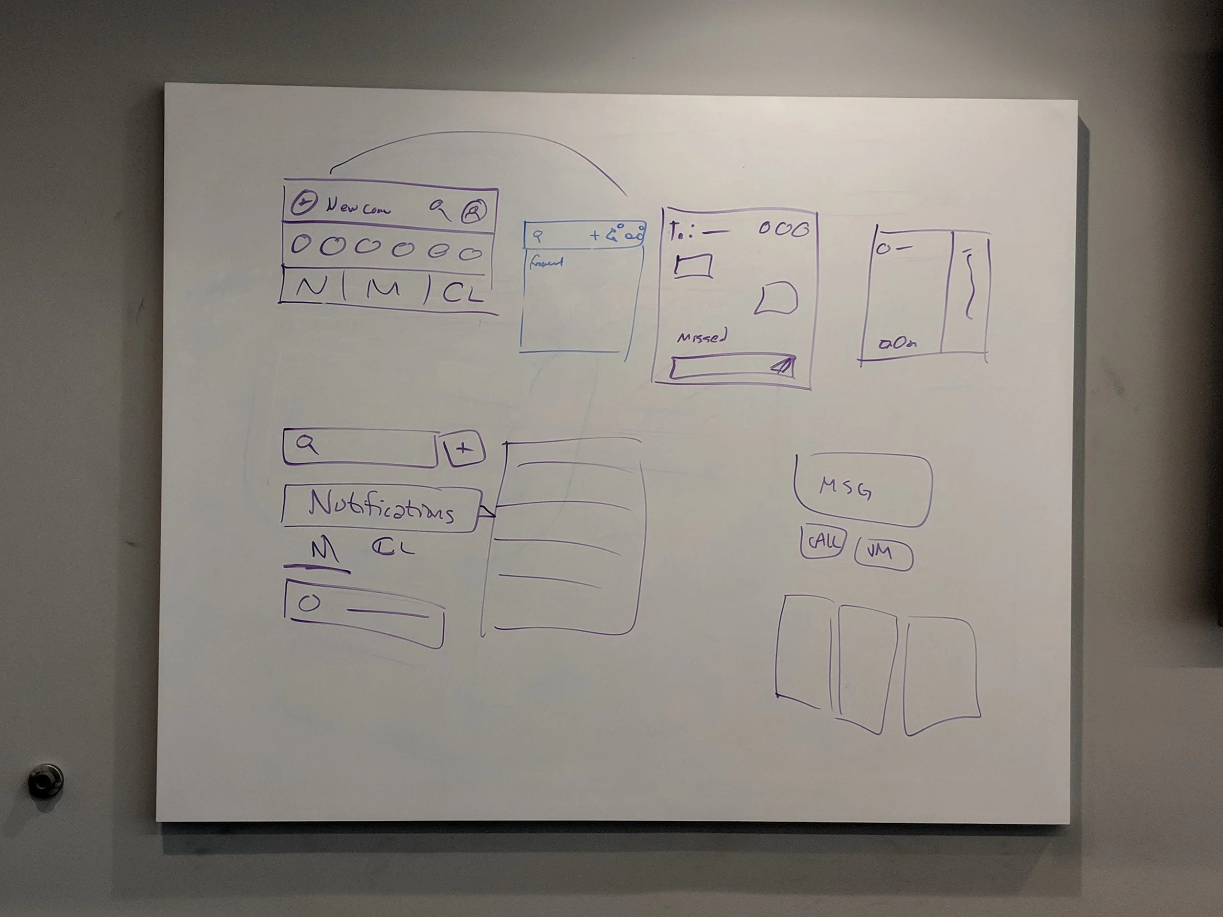 During this same version of the framework, I played with many different iterations of the how the buttons would be presented internally. I wanted to make sure that, like the rest of the desktop experience, they aligned with the mobile application so you can see cues taken from the mobile experience while also seeing small improvements based on how the web application was set up. These details also changed over time based on internal critiques, overall framework tweaks, and shifting acceptance criteria. Above you can see the different ways to start a message with the ongoing caller from the call.